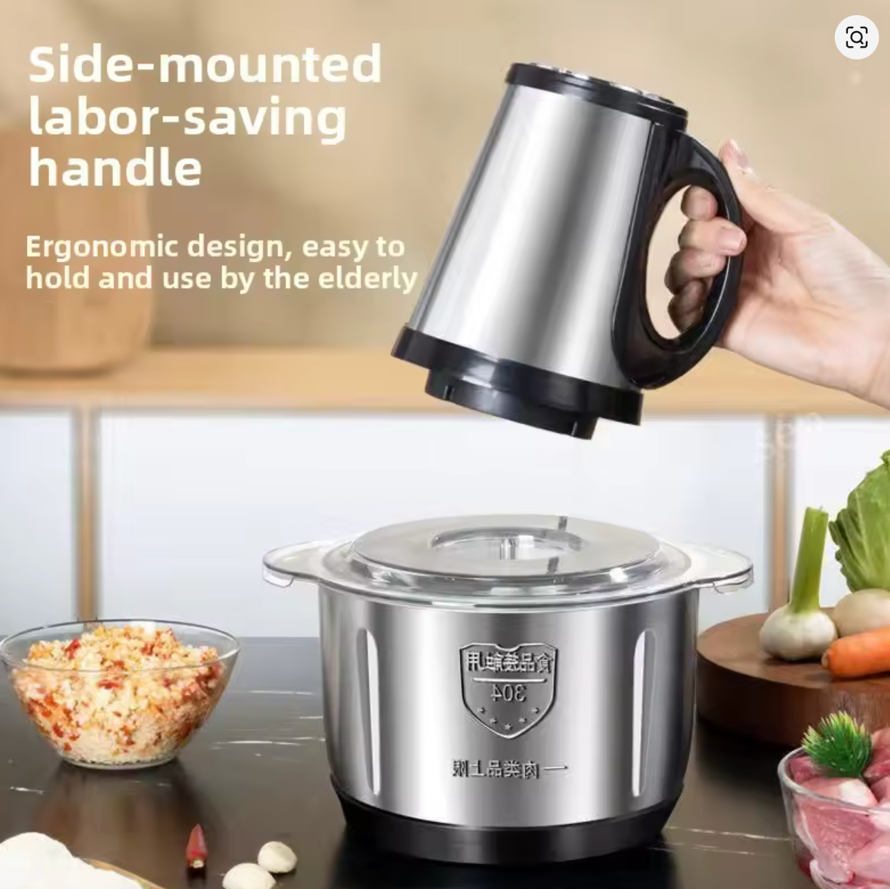 Prepárate para cocinar con eficiencia y potencia con esta picadora eléctrica doméstica de acero inoxidable 304. Su diseño compacto y motor de 200W permiten triturar, moler o picar carne, verduras, frutas, nueces y más en segundos.